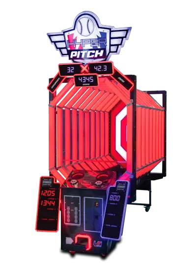 HYPERpitch is the ultimate baseball-style pitching game, delivering high-energy, competitive fun for sports bars, arcades, and entertainment venues. Whether players go solo or challenge a friend, they get three chances to pitch for the bullseye in an electrifying contest of speed vs accuracy. Dynamic LED lights chase the ball down the HYPER Tunnel, while explosive sound effects heighten the excitement as the ball slams into the target. Designed to foster a social and competitive atmosphere, HYPERpitch naturally draws a crowd and keeps players coming back for more. With its modern sports bar appeal and skill-based gameplay, this game is a must-have for venues looking to combine interactive entertainment with high replay value.